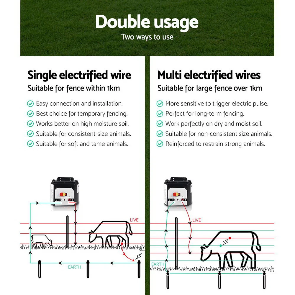 Giantz 18km Electric Fence Energiser 1.56J | Battery-Powered Safety for Livestock | Easy Install & CE RoHS Approved