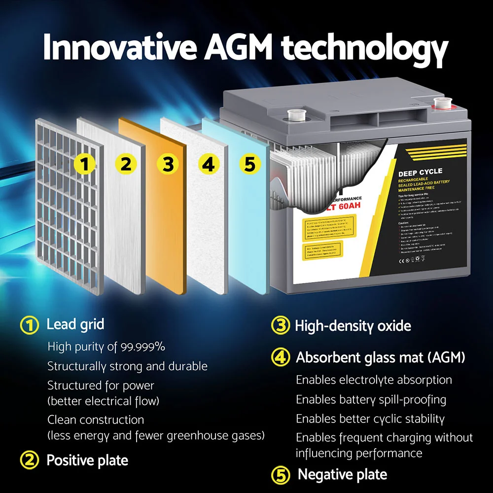Giantz AGM Deep Cycle Battery 12V 60Ah Portable Box – Maintenance-Free, 1400 Cycles, for Caravan, Camping, Marine
