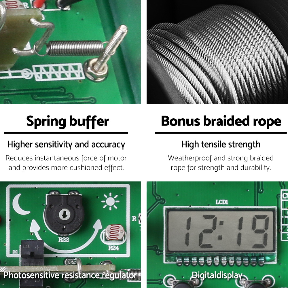 Say goodbye to early morning chicken chores with the Giantz Automatic Chicken Coop Door Opener. This smart device operates on a timer and light sensor, adjusting for seasonal daylight changes. Its robust motor and braided rope ensure reliable performance, while the aluminium door and rails offer durability and rust resistance. Equipped with a photosensitive resistance regulator, digital display, and battery warning light, it’s both user-friendly and efficient. Weatherproof and easy to install with included screws, it's the ultimate coop upgrade.
