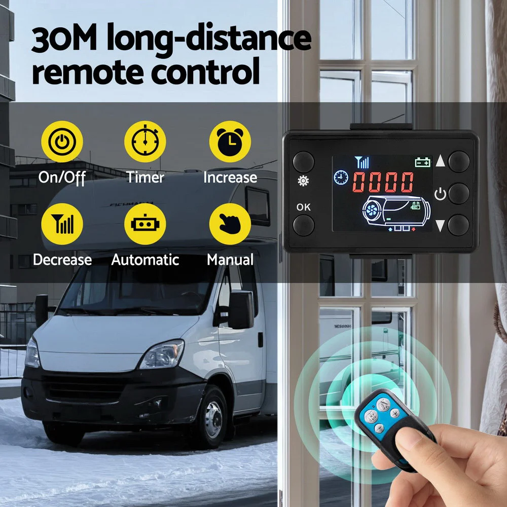 Experience unparalleled warmth wherever your journey takes you with the Giantz Diesel Air Heater All-in-one 12V, 5KW. Ideal for caravans, RVs, trucks, and more, its compact design ensures easy installation and quiet operation. Equipped with a 5L fuel tank, it delivers long-lasting, efficient heating with low fuel consumption. The user-friendly LCD monitor and a 30-metre remote control offer effortless adjustments. Built to withstand temperatures from -40 to +50°C, this heater is your reliable companion in any climate, ensuring comfort and convenience on the road.