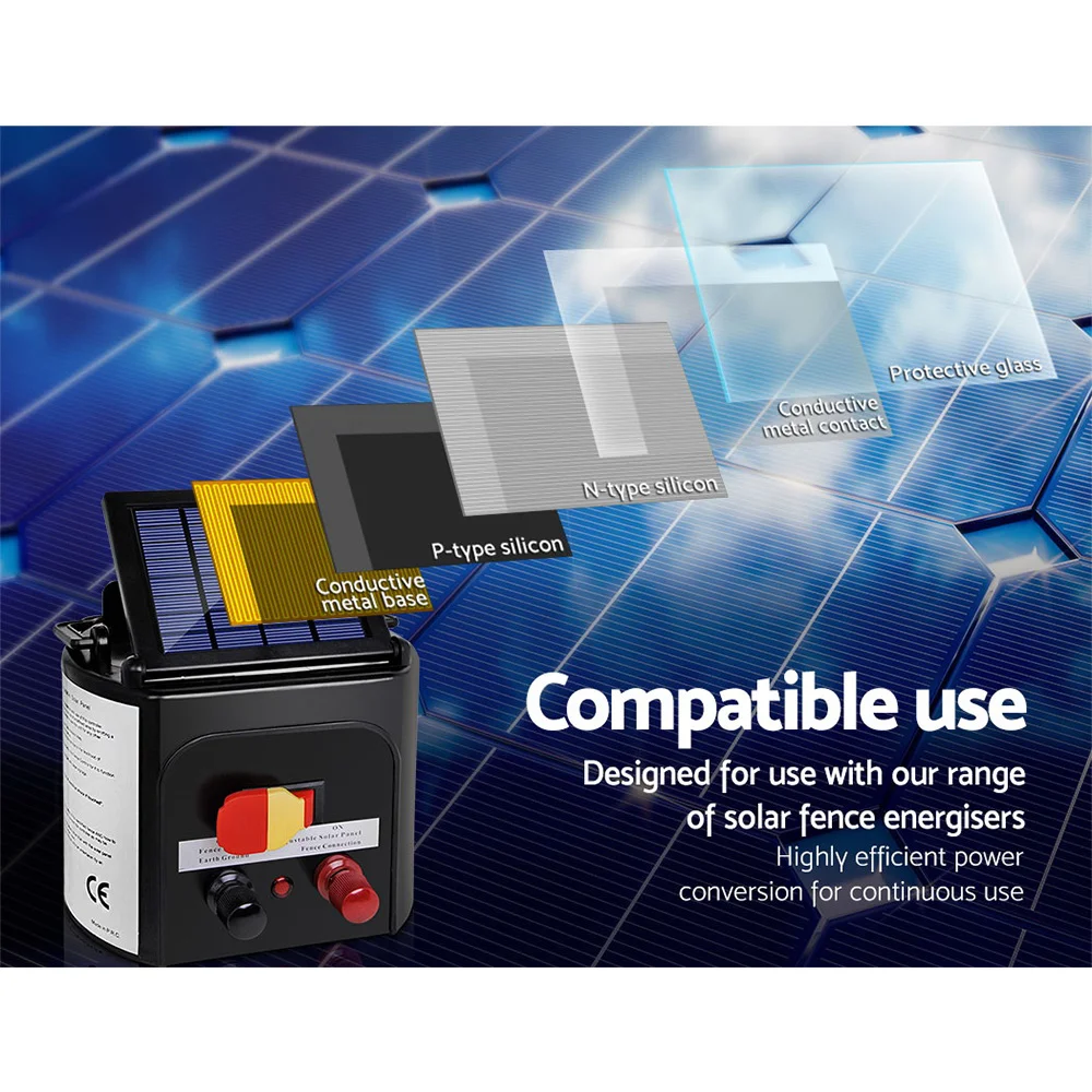 Giantz 3KM Solar Fence Energiser 0.1J, Monocrystalline Panel, Waterproof, 15-20 Day Charge, Safe Livestock Control