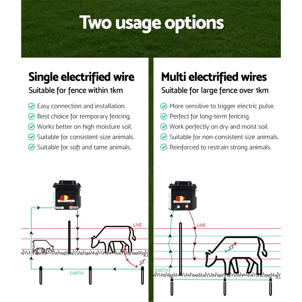 Giantz 5KM Solar Electric Fence Energiser with 2KM Poly Wire – Efficient Livestock Control & UV Resistant