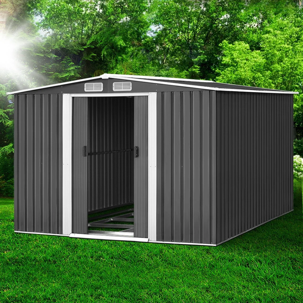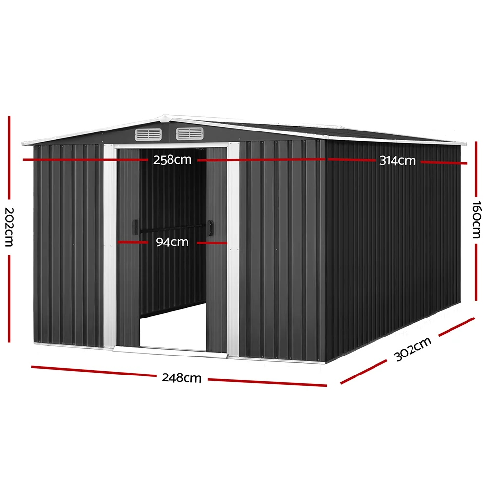 Giantz 2.58x3.14M Metal Garden Shed w/ Sliding Doors & Ventilation, Galvanised Steel, Weatherproof Outdoor Storage