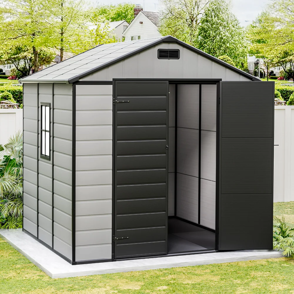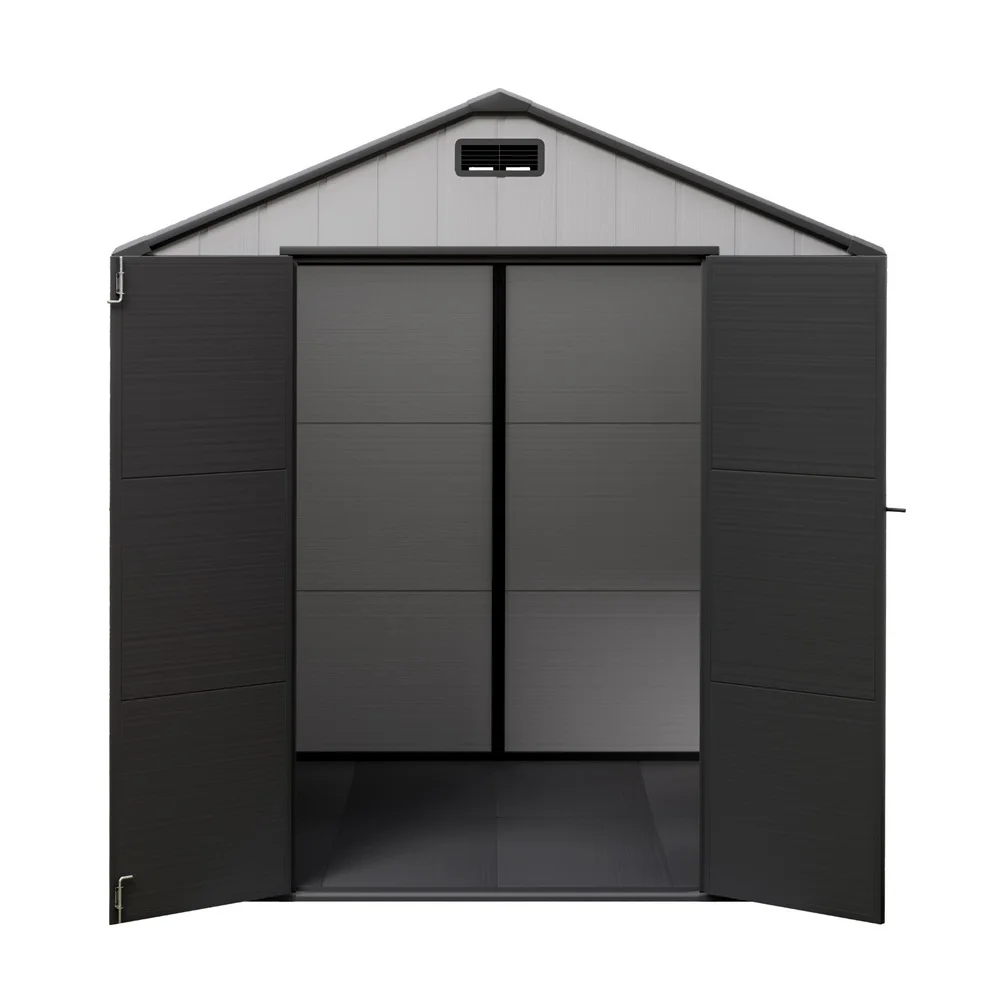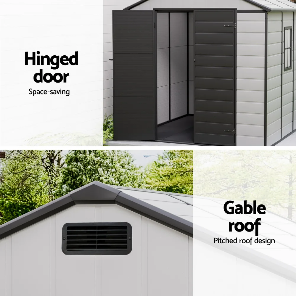 Giantz Garden Shed 2.15x2.14M Outdoor Storage, Steel Reinforced Polypropylene, Lockable, Vents, Grey/Black