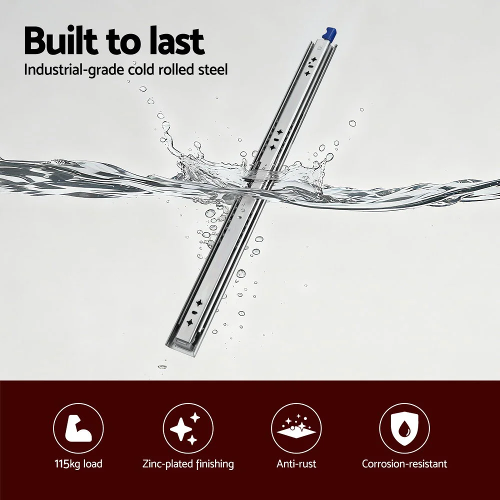 Giantz Heavy-Duty Drawer Slides 500-1000mm | Zinc Plated Steel | 115kg Load | Locking Full Extension | Smooth Glide