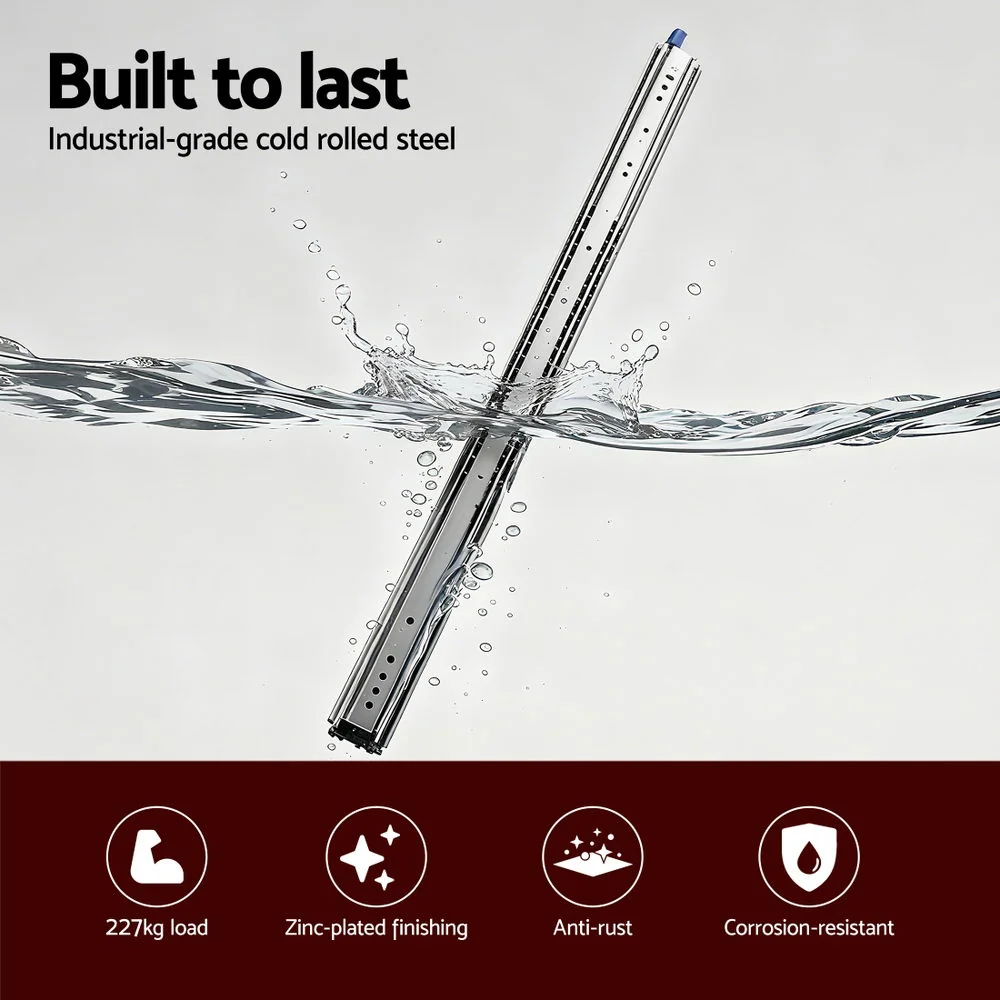 Giantz Heavy Duty Drawer Slides 914-1829mm, 227kg Capacity, Full Extension, Locking, Cold Rolled Steel, Zinc Plated