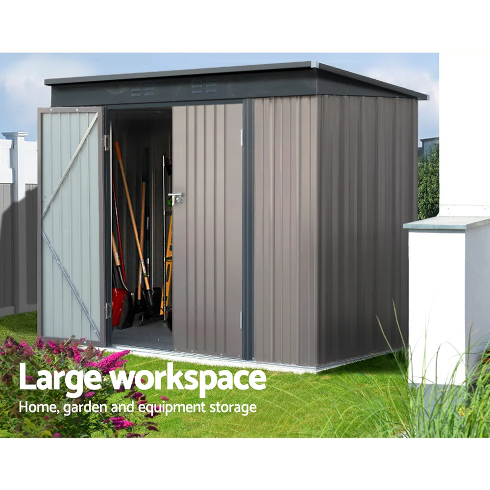 Giantz Garden Shed Outdoor Storage 2.15x1.3M, Galvanised Steel, Sliding Doors, Vents, Lock, Weatherproof, Grey