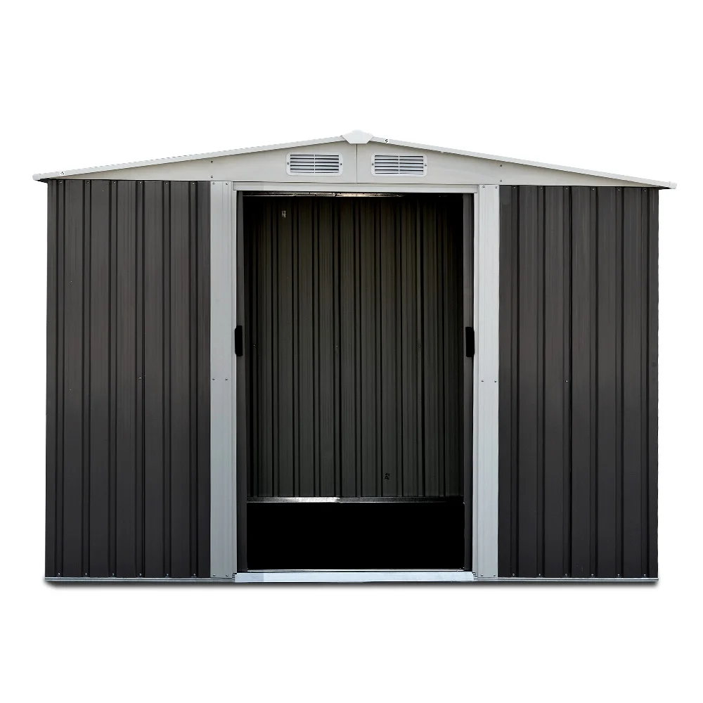 Giantz 2.58x3.14M Metal Garden Shed w/ Sliding Doors & Ventilation, Galvanised Steel, Weatherproof Outdoor Storage