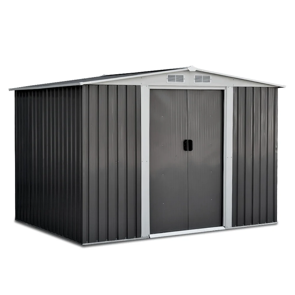 Giantz Garden Shed 3.22x1.96M Outdoor Storage, Galvanised Steel, Double Sliding Doors, Lock, Vents, Grey