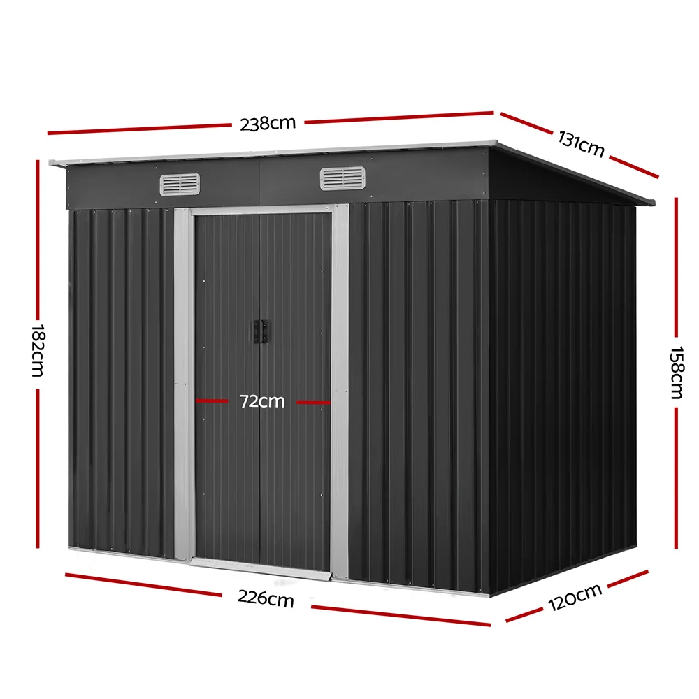 Giantz Garden Shed Outdoor Storage 2.15x1.3M, Galvanised Steel, Sliding Doors, Vents, Lock, Weatherproof, Grey