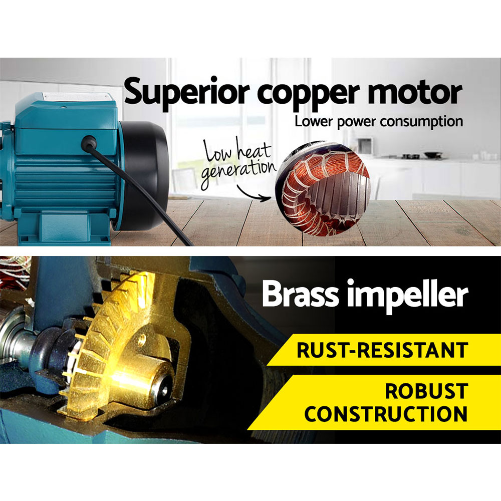 Boost your water pressure effortlessly with the Giantz Peripheral Pump Auto Controller. Delivering a powerful 35L/min flow with a 35m head and 8m suction, this pump is perfect for pools, gardens, and irrigation. Featuring a robust IP-rated copper motor, rust-resistant brass impeller, and cast iron body, it's built to last. With a user-friendly automatic controller and pressure gauge, it simplifies operation. Easy to install and maintain, just plug it into any Australian socket and let your imagination flow with possibilities.