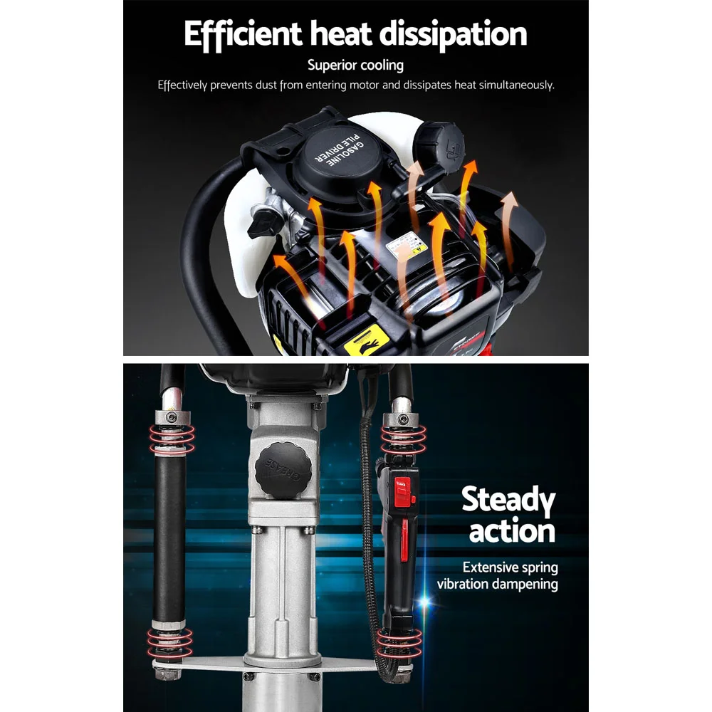 Giantz 38CC 4-Stroke Petrol Post Driver - 75mm Capacity, Vibration Absorption, Heavy-Duty Aluminium Casing, 2-Tonne Force