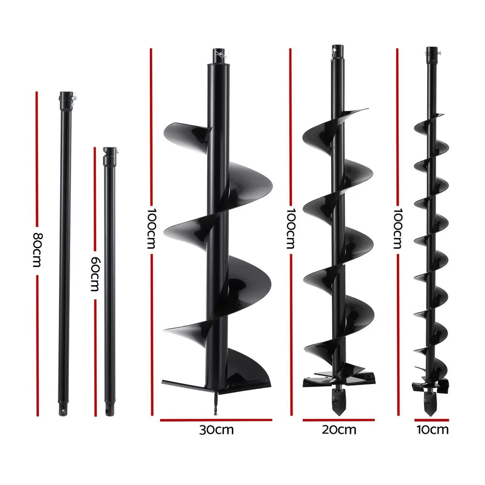 Giantz Carbon Steel Auger Drill Bit Set - 100mm, 200mm, 300mm for Post Hole Digger - Durable, Easy Attach, Versatile Use