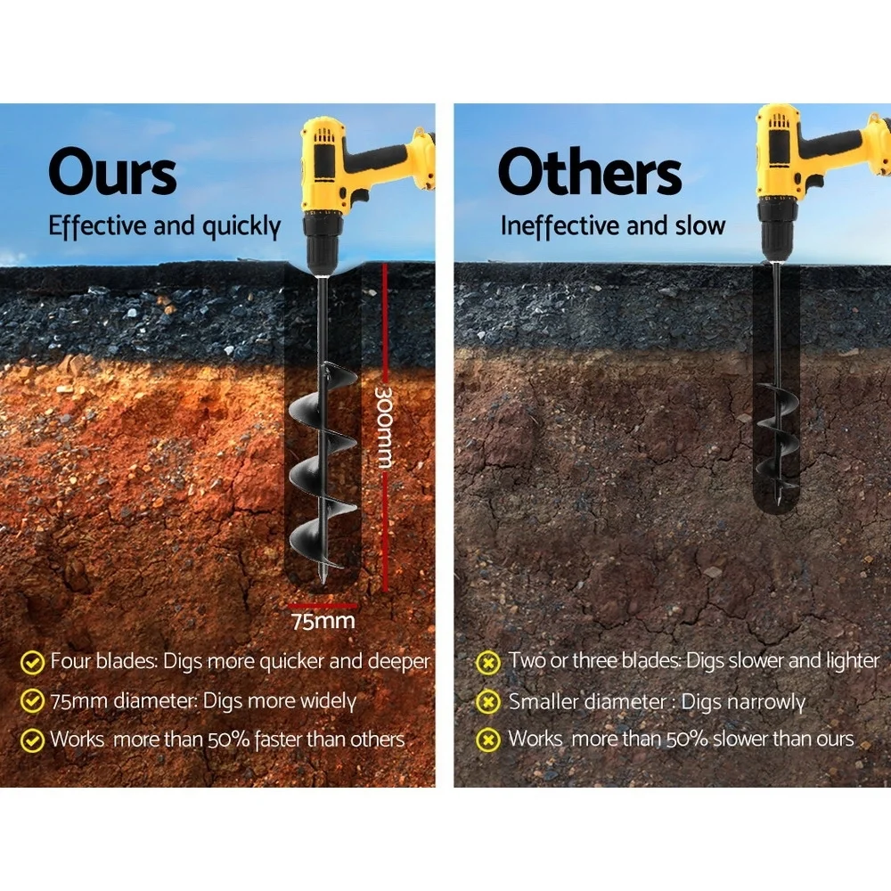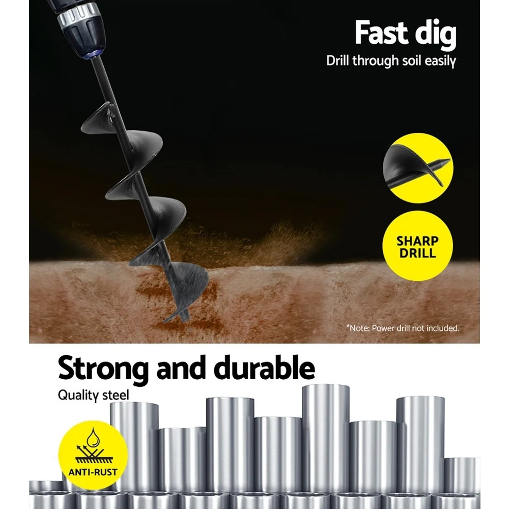 Giantz Carbon Steel Auger Drill Bit Set - 100mm, 200mm, 300mm for Post Hole Digger - Durable, Easy Attach, Versatile Use