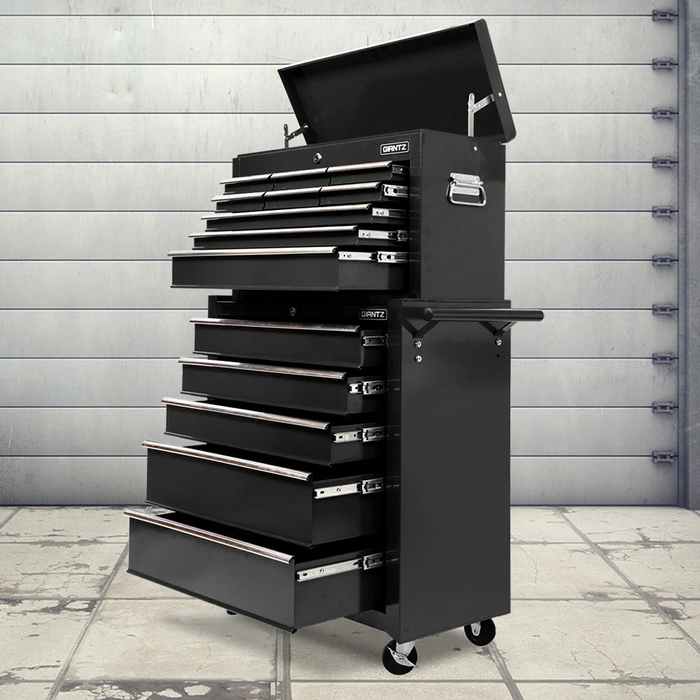 Giantz 14 Drawer Steel Tool Box Chest & Trolley, Lockable Garage Storage with 360° Castors, 61.5x33x112cm, Black