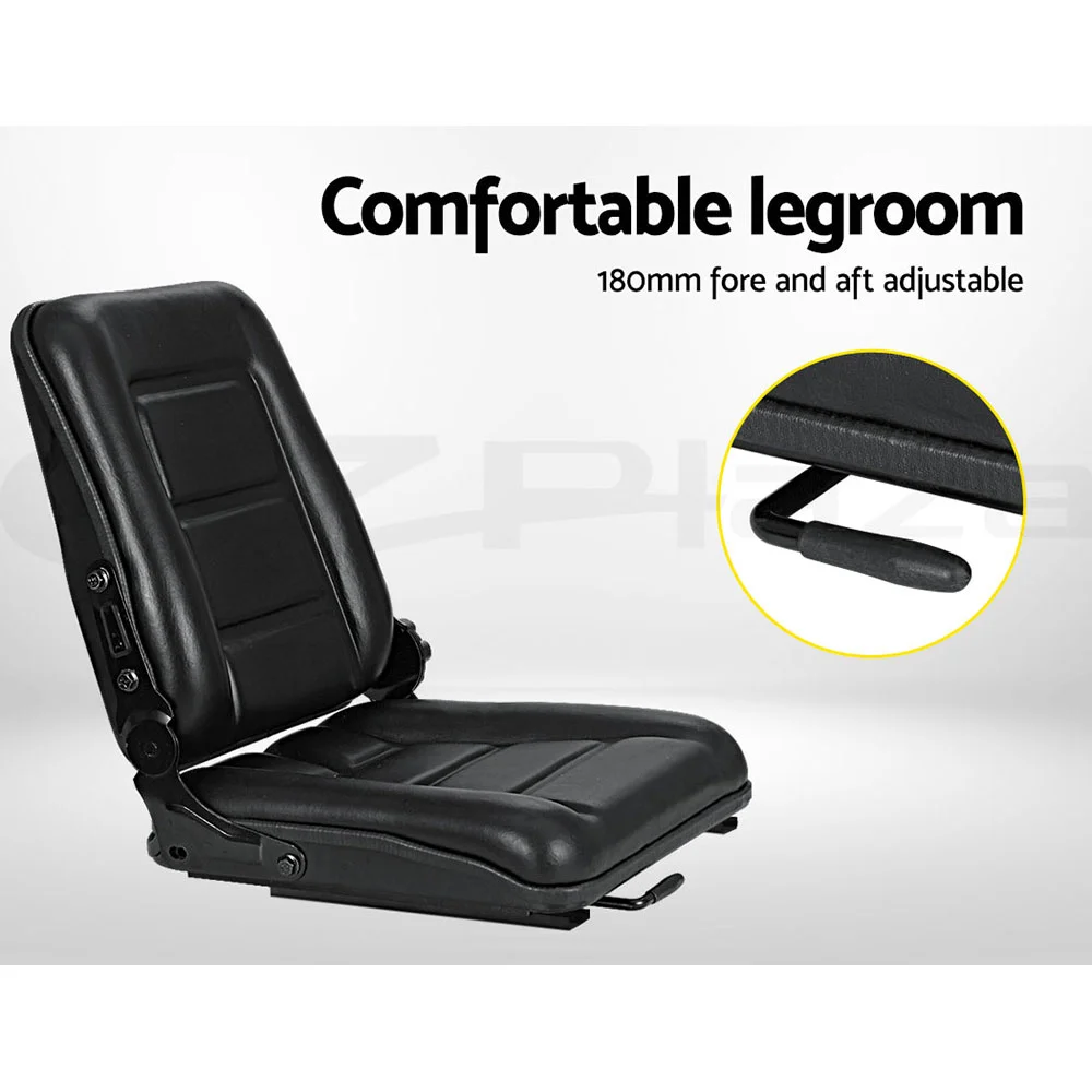 Giantz Universal Tractor Seat for Forklift Excavator Truck - Adjustable, PU Leather, 50-130kg Weight Suspension, Black