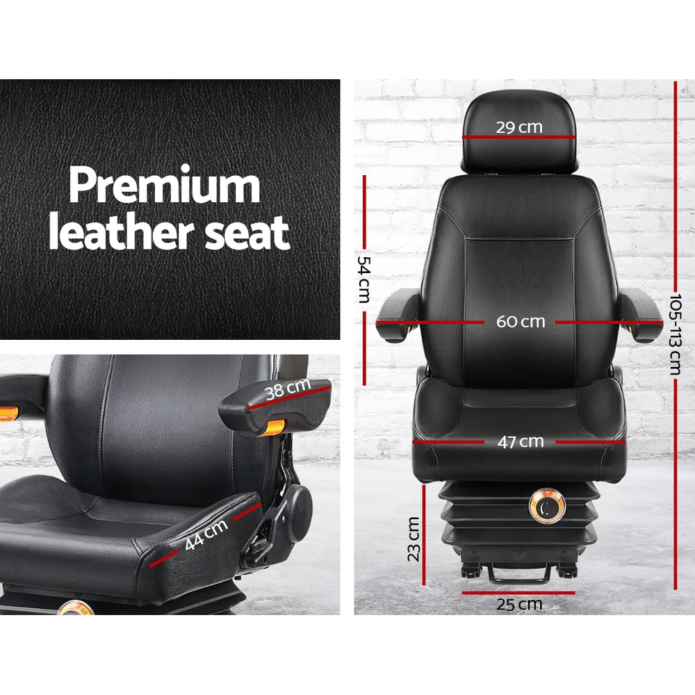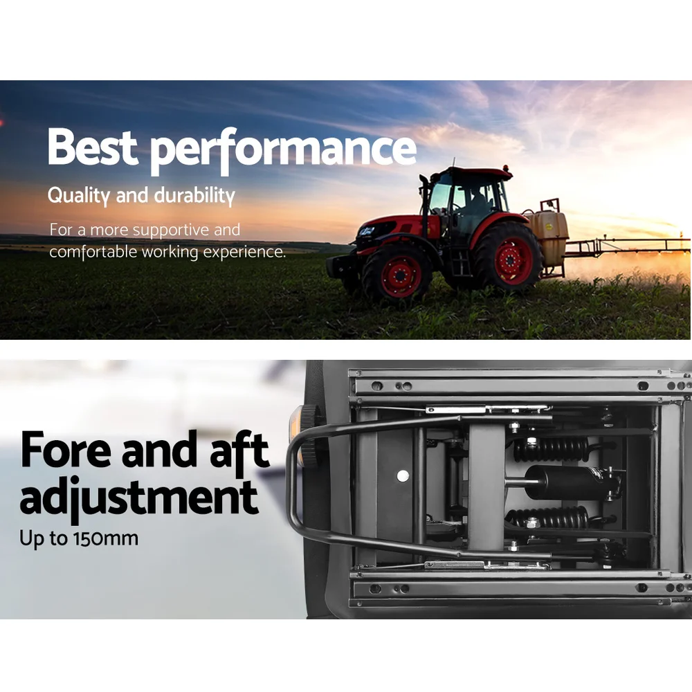 Giantz Universal Tractor Seat for Forklift Excavator Truck - Adjustable, PU Leather, 50-130kg Weight Suspension, Black