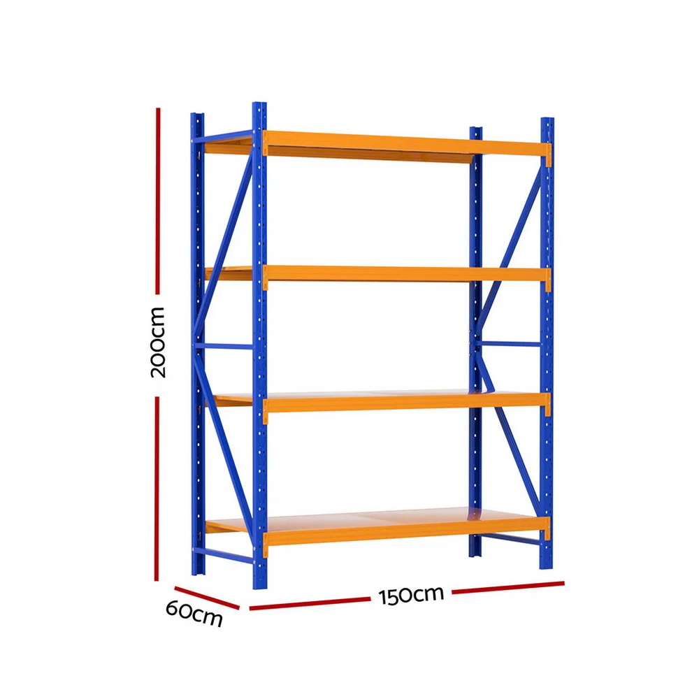 Giantz 2Mx1.5M Heavy-Duty Warehouse Shelving Rack, 200kg Capacity, Industrial Steel, Adjustable Shelves, Easy Assembly