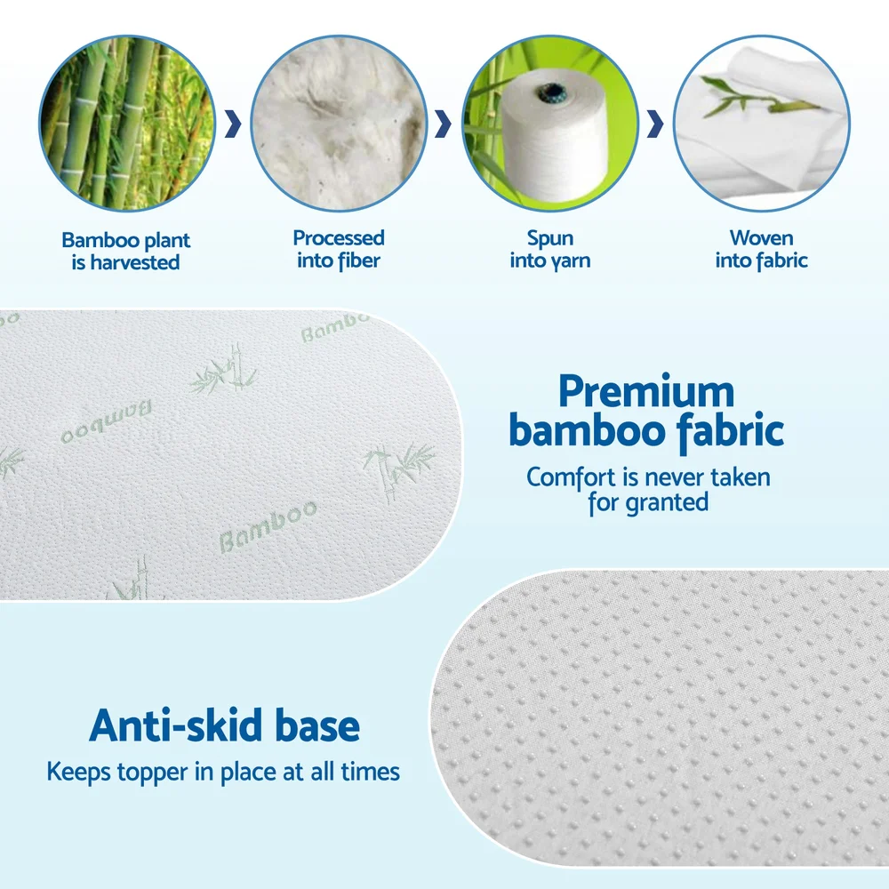 Transform your sleep experience with the Giselle Bedding 12cm Memory Foam Mattress Topper. Designed for luxurious comfort, it features 100% viscoelastic memory foam with durable PU silicone gel and over 1000 support points for superior pressure relief. The ventilated, cool gel design and breathable bamboo cover ensure maximum airflow and freshness. Enjoy undisturbed rest with motion isolation, even weight distribution, and an anti-skid base to keep the topper securely in place. The removable, machine-washable cover makes care effortless.