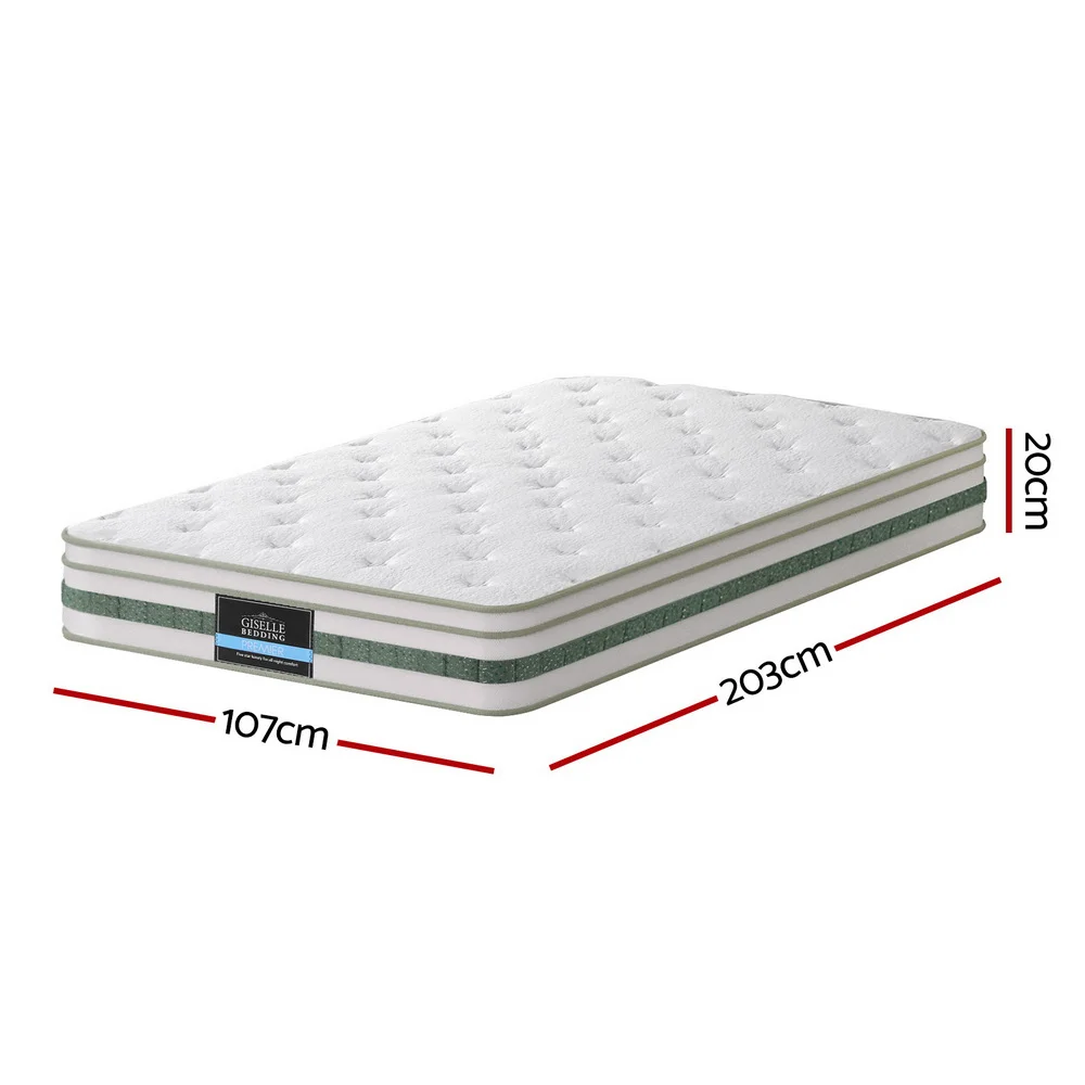 20cm Giselle Bedding King Single Mattress Mint Series with Green Tea Foam, Euro Top, Bamboo Fabric & Pocket Springs