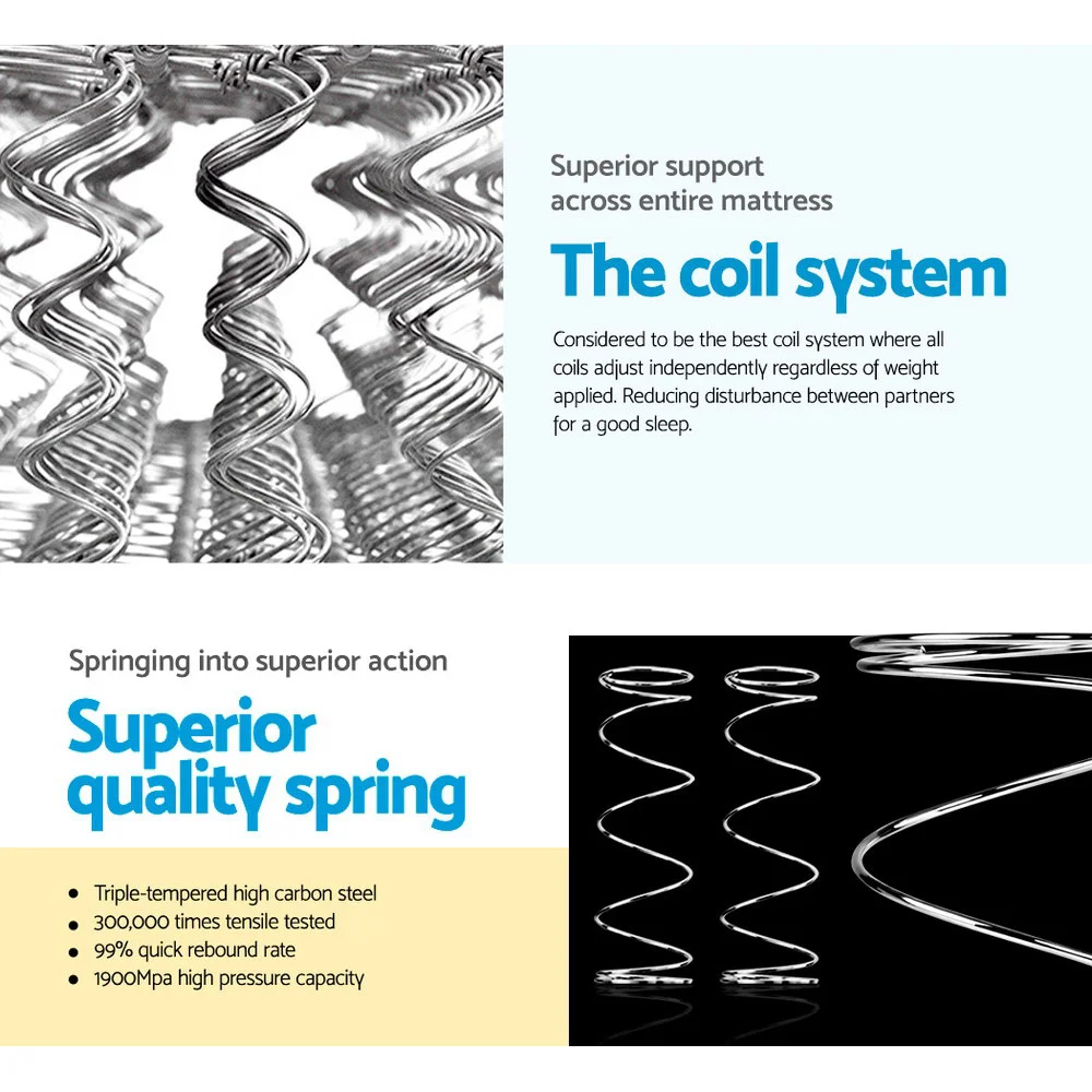 Giselle Bedding 21cm King Single Mattress - Peyton Pocket Spring, Medium Firm, Hypoallergenic, Soft Quilting, 450 Coils