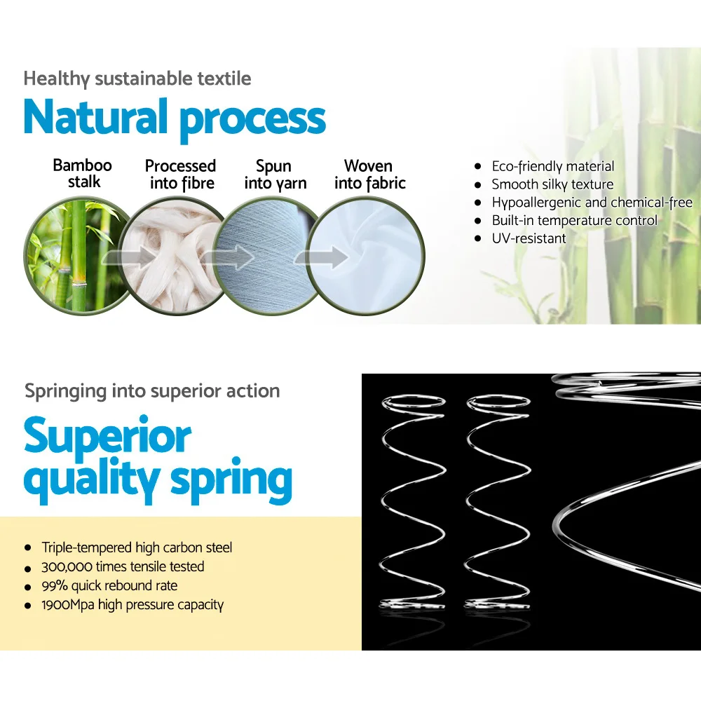 Giselle Bedding Alanya 34cm Euro Top Mattress - Single, Bamboo Charcoal Cover, Medium-Firm, 5-Zone Support
