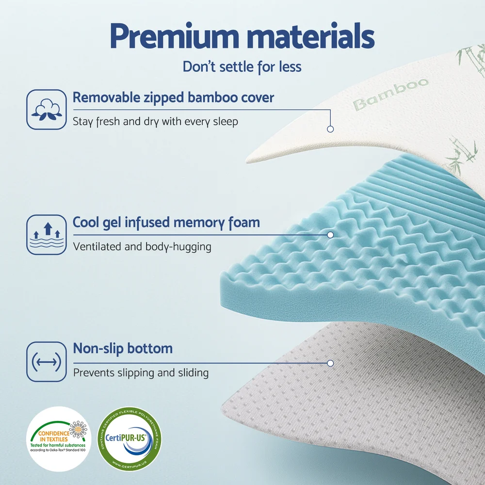 Giselle Bedding King Size 10cm Memory Foam Mattress Topper with Cool Gel & Bamboo Cover for Enhanced Comfort