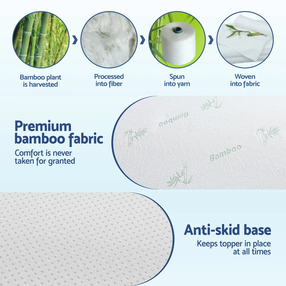 Giselle Bedding Bamboo Mattress Topper Single 7.5cm Pillowtop, Anti-Allergy, Breathable, 3D Quilted, Washable