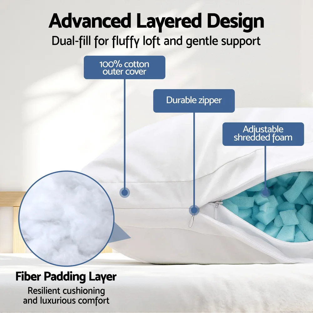 Giselle Bedding Shredded Memory Foam Pillow - Adjustable Loft, 70x45CM, Dual-Layer Cotton Cover, Customised Comfort