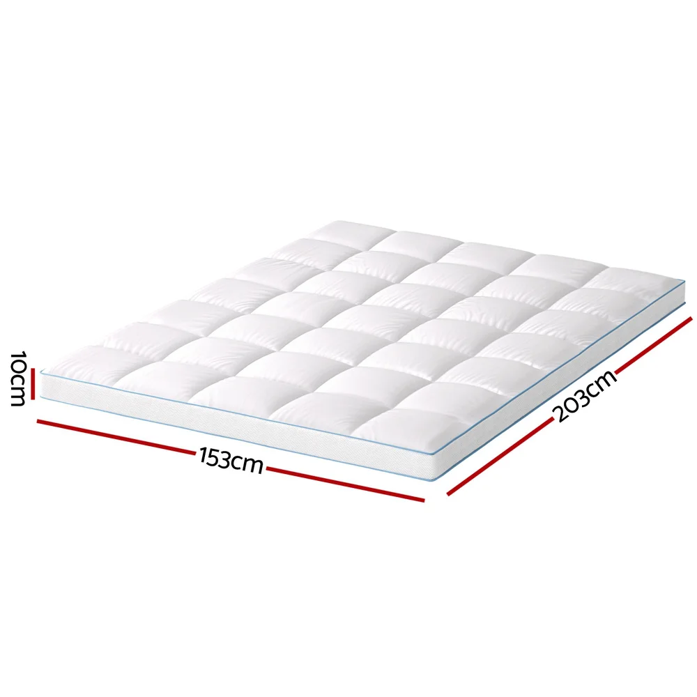 Giselle Bedding Queen Mattress Topper 10cm Pillowtop Bamboo Blend, Microfibre Cover, Hypoallergenic, White