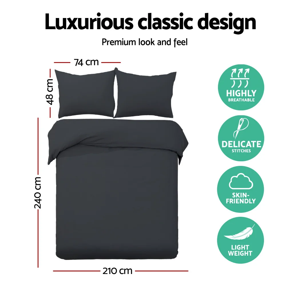 Giselle Bedding 100% Microfibre Super King Quilt Cover Set - Classic Black, 3-Piece, Luxuriously Soft & Breathable