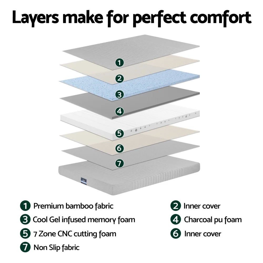 Giselle Bedding Cool Gel Memory Foam Mattress, Charcoal 7-Zone, Washable Bamboo Cover, 15cm Single, Medium-Firm Comfort
