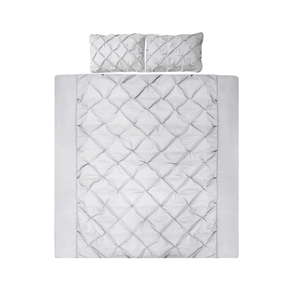 Giselle Bedding Queen 3-Piece Diamond Pintuck Quilt Cover Set, Grey - Premium Microfibre, Elegant and Breathable