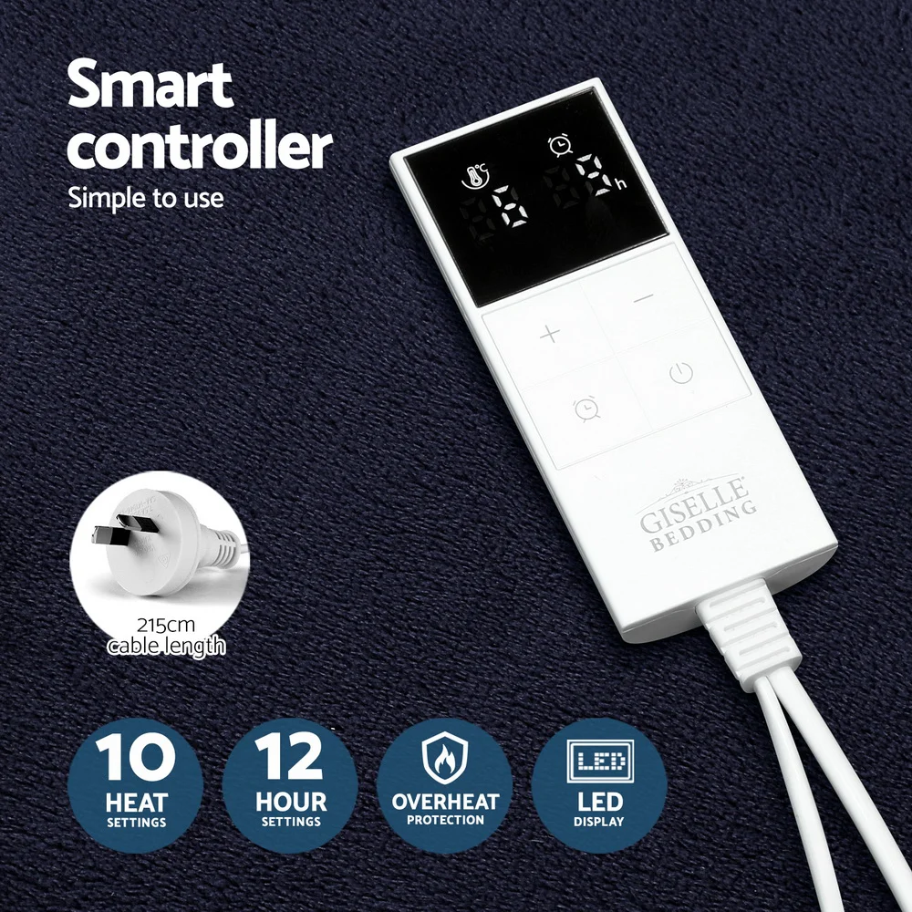 Experience ultimate warmth and comfort with the Giselle Bedding Electric Throw Rug. Crafted from premium flannel and Sherpa fabric, this double-sided heated blanket features 10 adjustable temperature levels, a 12-hour timer, and even heat distribution for personalised cosiness. With low energy consumption, overheat protection, and a detachable LED controller, enjoy up-close warmth while cutting down on heating bills. Anti-dust mite and bacteria, and machine washable for easy care, perfect for any living space.