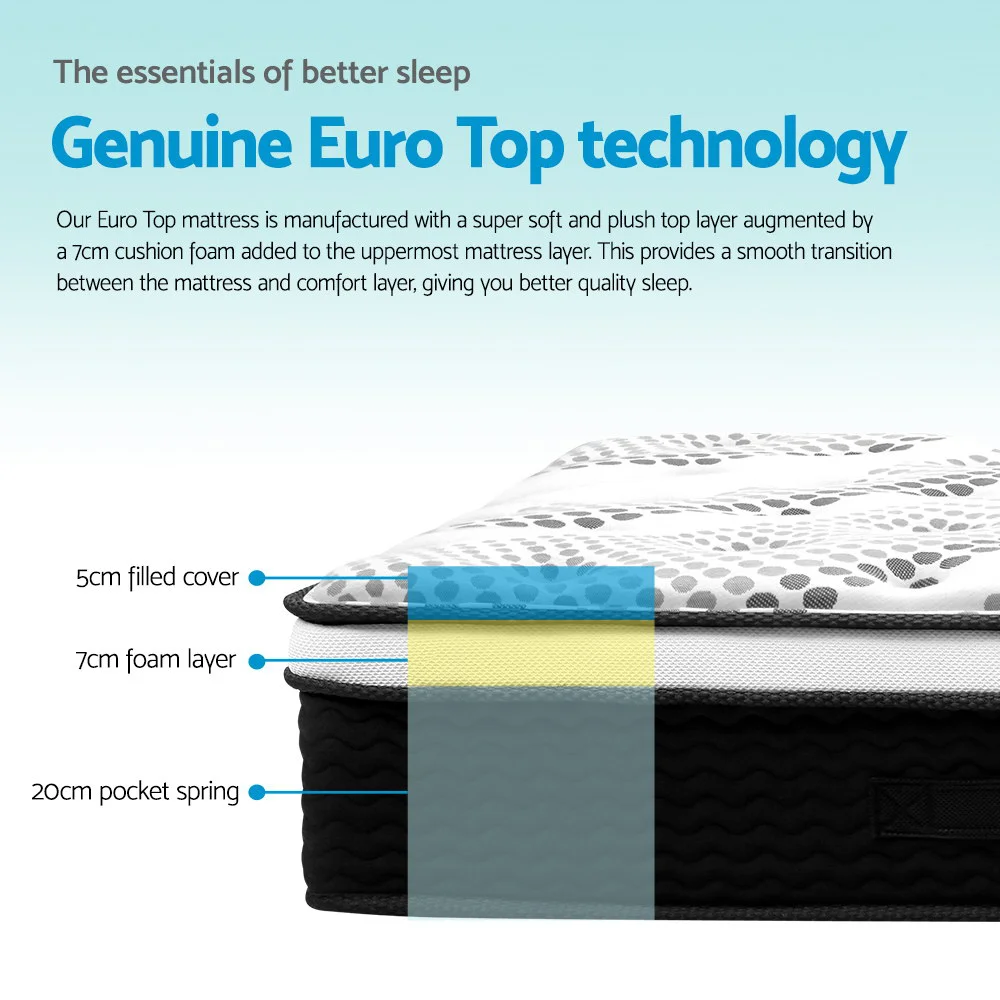 Giselle Bedding Algarve Series 34cm Euro Top Pocket Spring Mattress - King Single, Medium-Firm, High-Density Foam