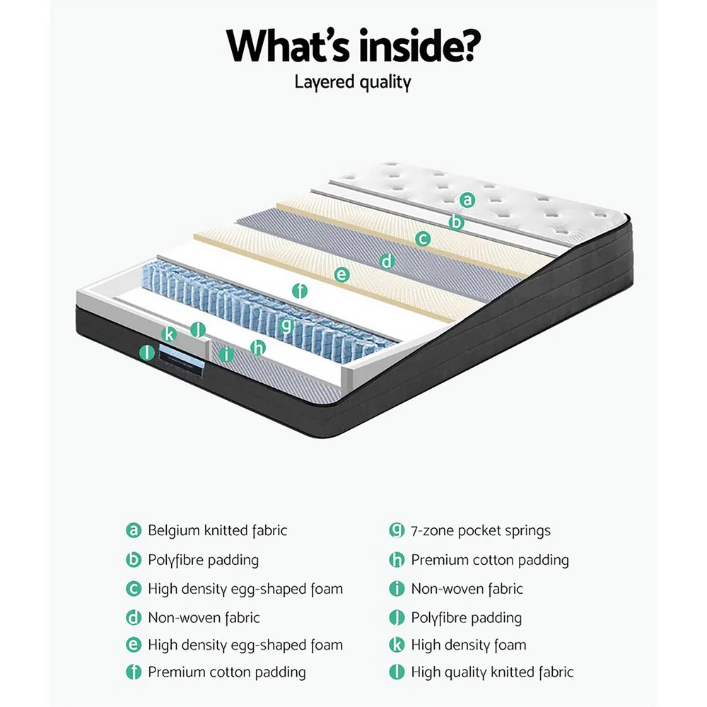 Giselle Bedding Mykonos Series 30cm Medium Firm Double Pocket Spring Mattress with High-Density Foam & Breathable Fabric