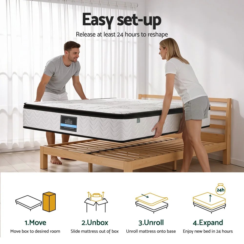 Giselle Bedding Verve 30cm Euro Top Double Mattress - Pocket Spring, Medium Firm, High Density Foam, Breathable Fabric