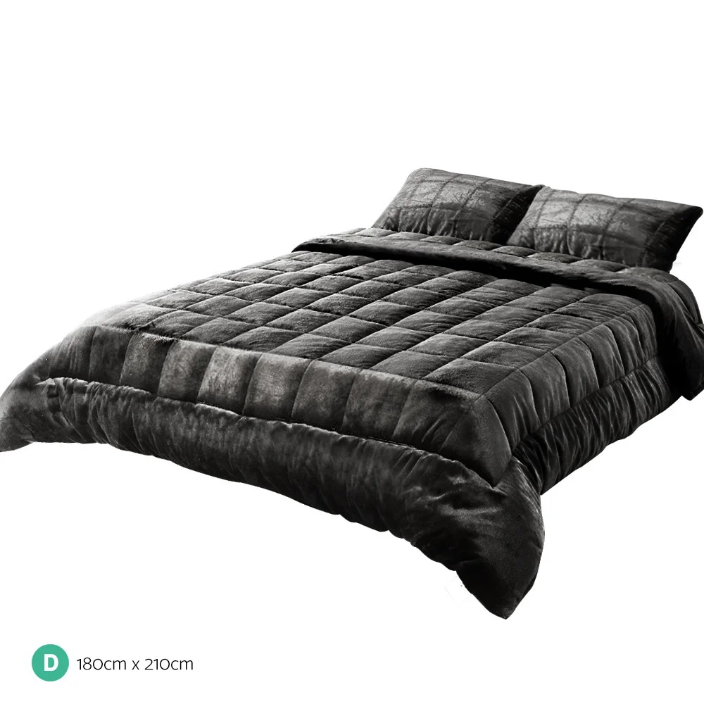 Giselle Bedding Faux Mink Quilt Charcoal Double with Pillowcases - Soft, Thermo-Regulating, Winter Weight Luxury