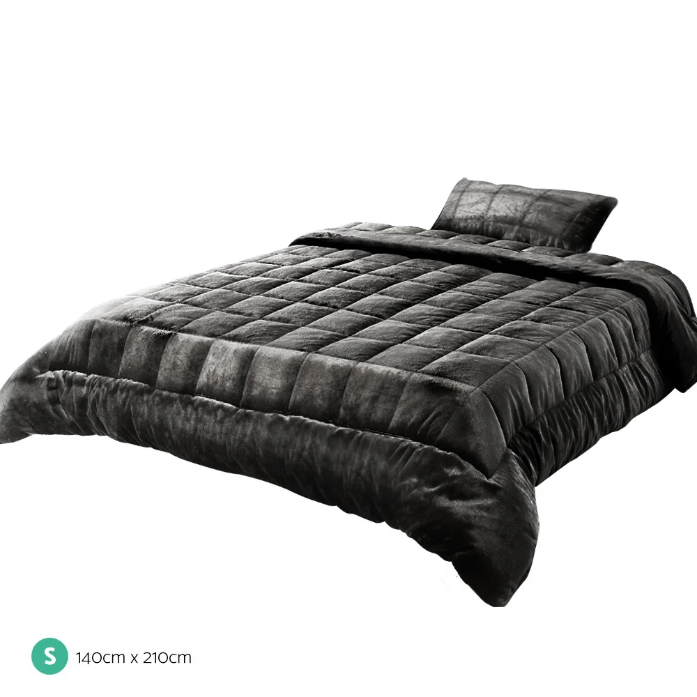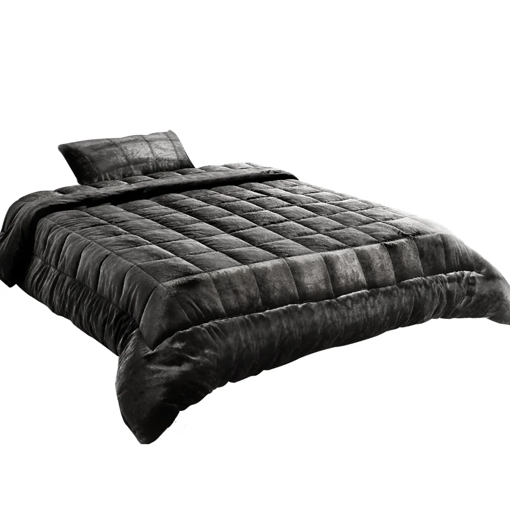Giselle Bedding Faux Mink Quilt Charcoal Single - Soft, Thermo-Regulating, Winter Weight with Matching Pillowcase