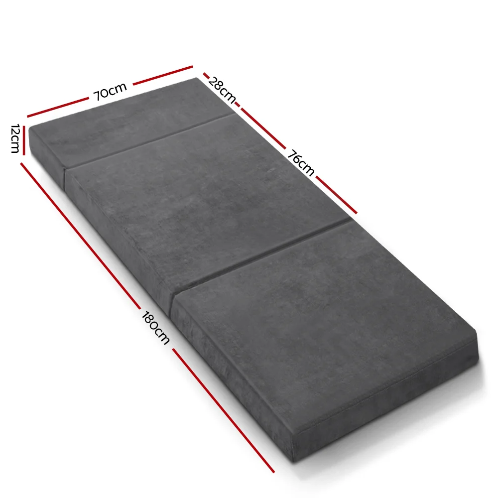 Giselle Bedding Foldable Single Mattress - Velvet Grey, High Density Foam, Washable Cover, 180x70x12cm