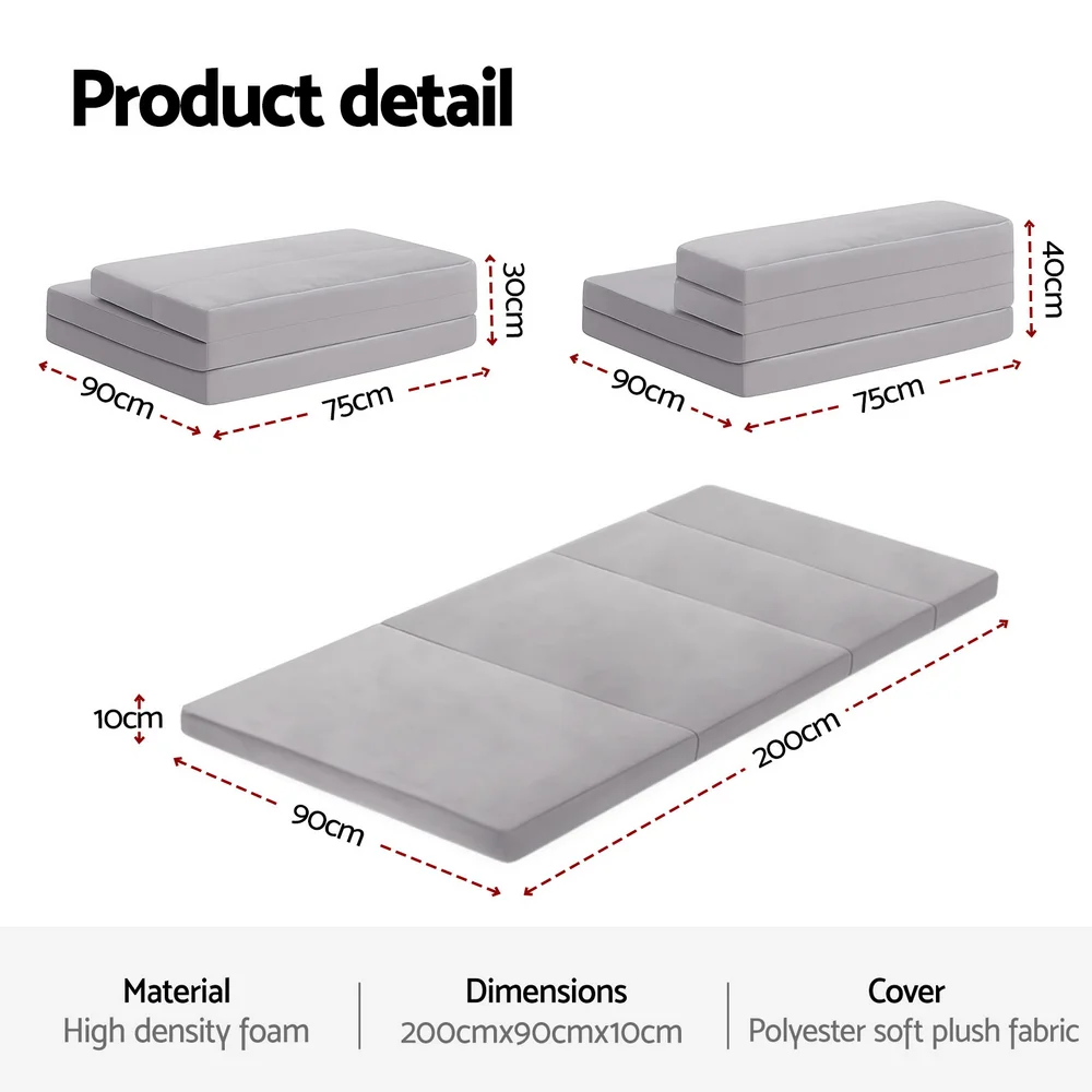 Giselle Bedding Foldable Mattress Sofa Bed, 4-Fold High-Density Foam, Plush Cover, Built-In Pillow, 200x90cm, Grey