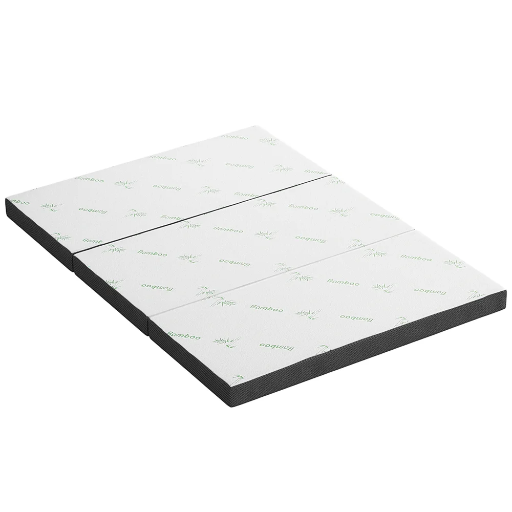 Giselle Bedding Foldable Double Mattress 3-Fold Bamboo Foam 190x137cm Breathable Air Mesh, Washable Cover