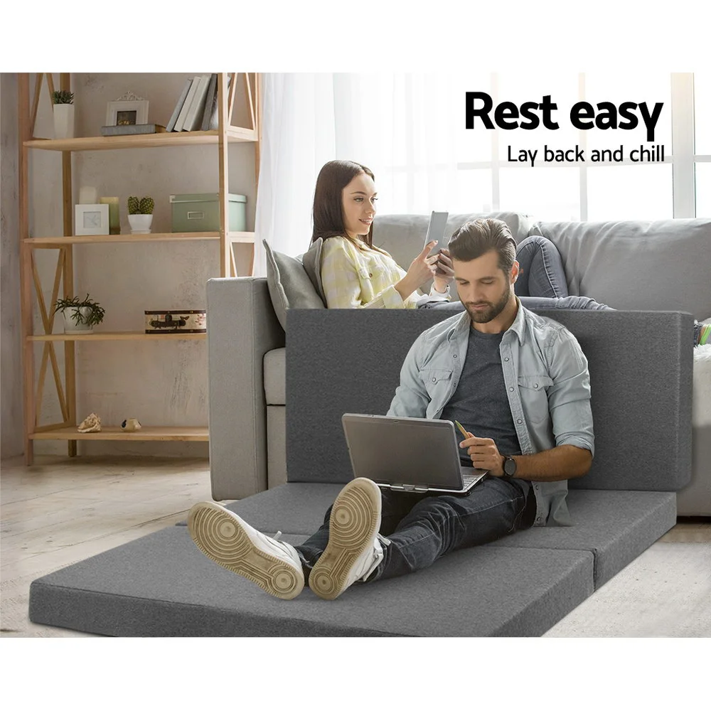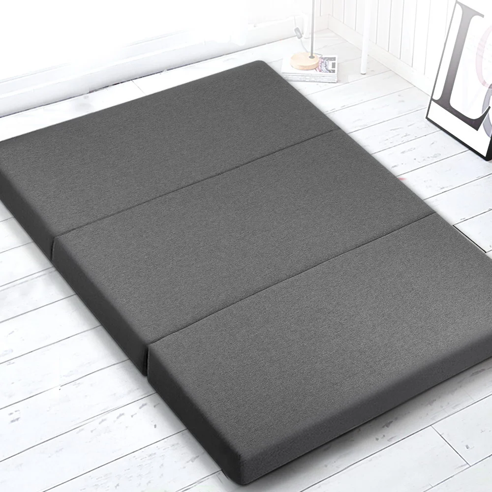 Giselle Bedding Foldable Double Mattress - Dark Grey Linen, High-Density Foam, 190x130cm, Washable Cover, Sofa Bed