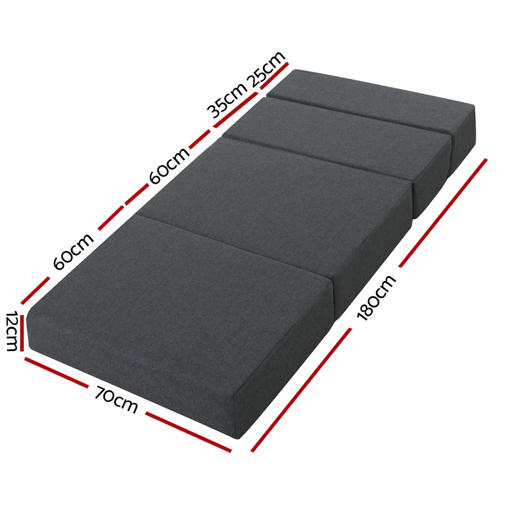 Giselle Bedding Foldable Mattress - Convertible Foam Bed & Couch, Dark Grey, 180x70x12cm, Faux Linen Cover, Washable