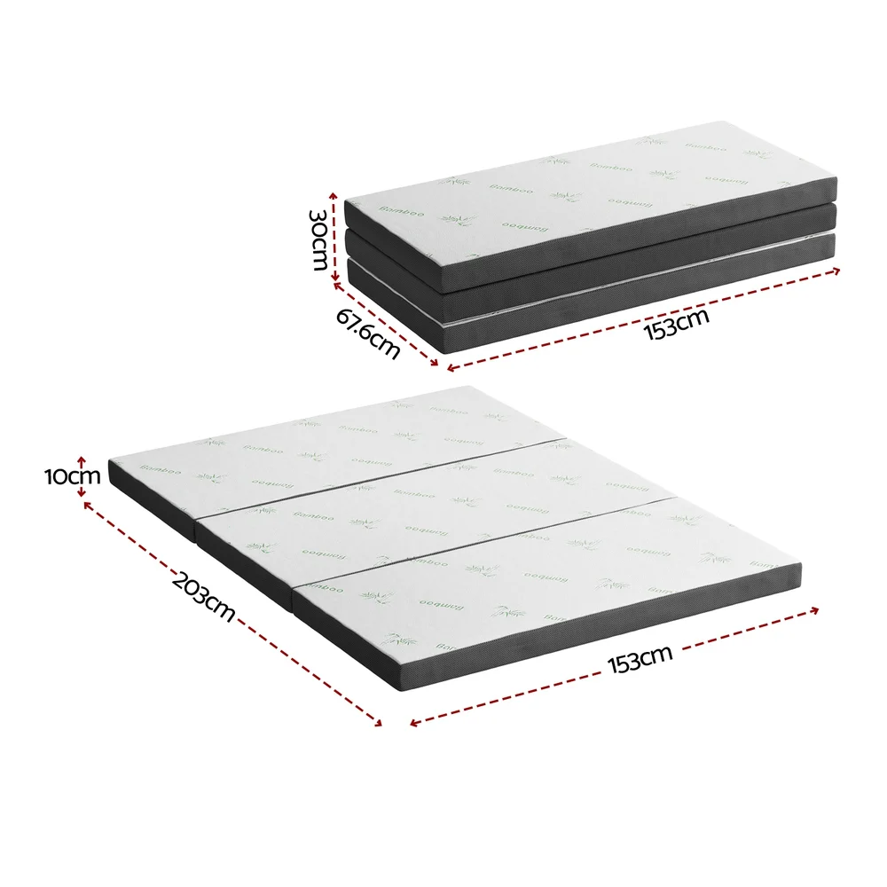 Giselle Bedding Foldable Queen Mattress, 3-Fold High-Density Foam, Bamboo Cover, Breathable Air Mesh, Portable Design