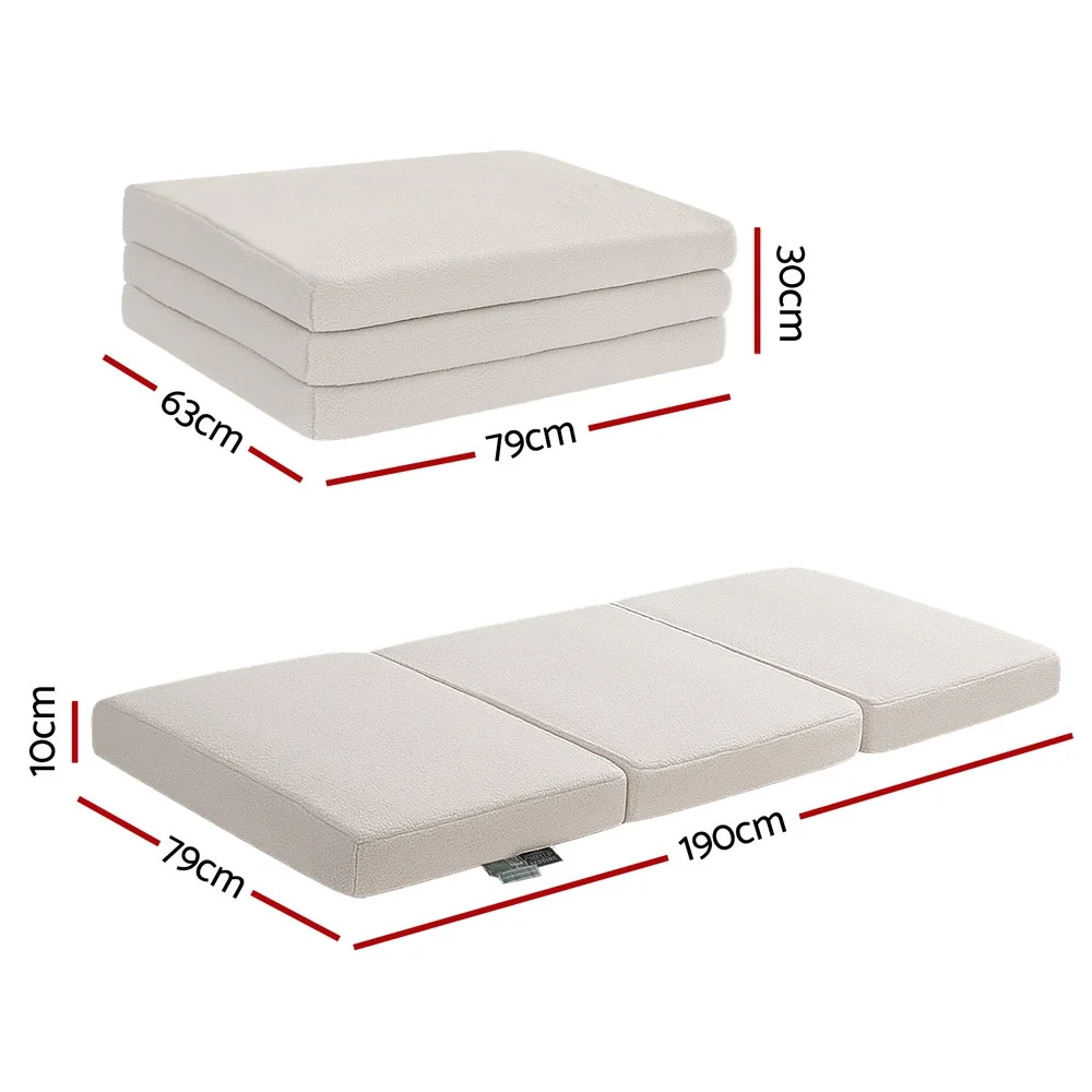 Giselle Bedding 3-Fold Foldable Mattress Sherpa Fleece 190x79cm Portable High-Density Foam Bed Chair Guest Travel