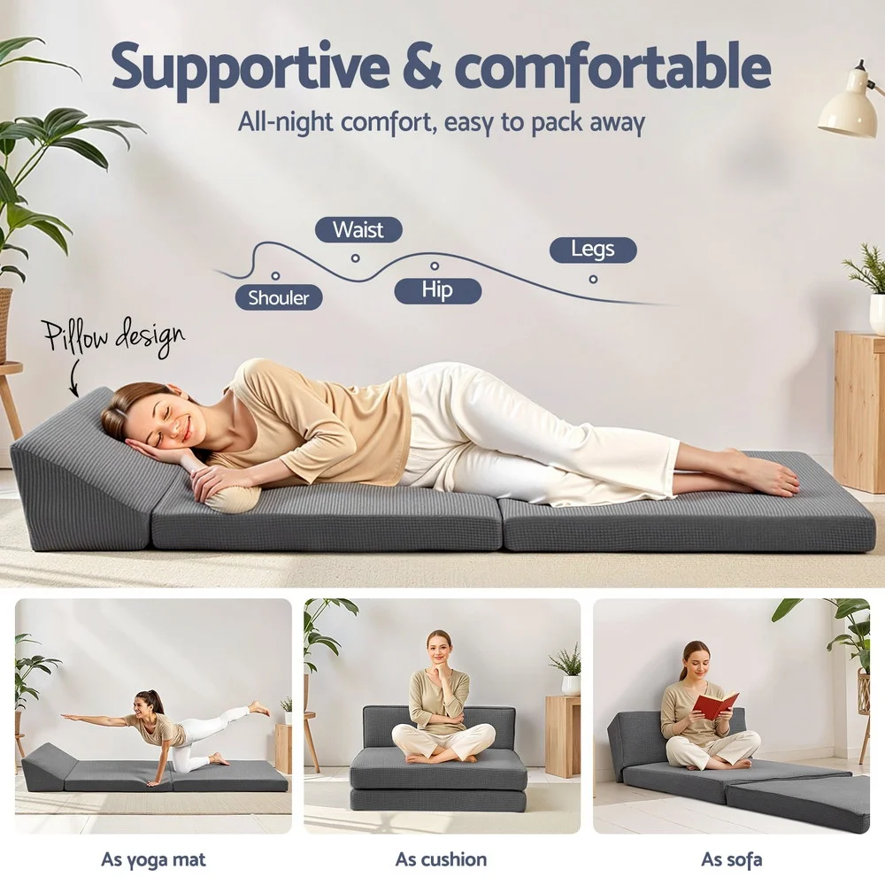 Giselle Bedding Foldable Trifold Mattress Sofa Bed, Grey, High-Density Foam, 184x70x10cm, Washable Cover, Pillow