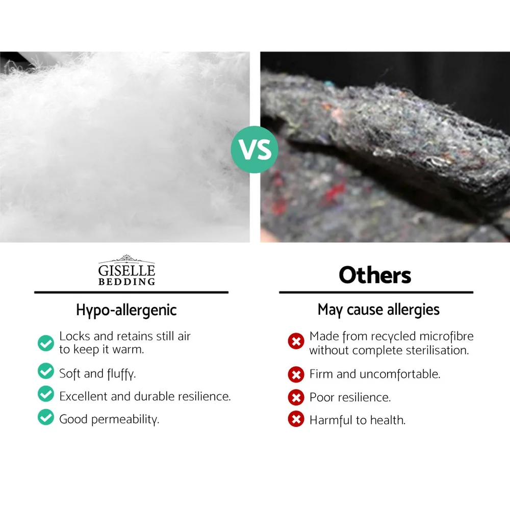 Giselle Bedding Duck Feather Down Pillow Twin Pack 1kg Fill 100% Cotton Shell Hypoallergenic 75x50cm Luxury Pillows
