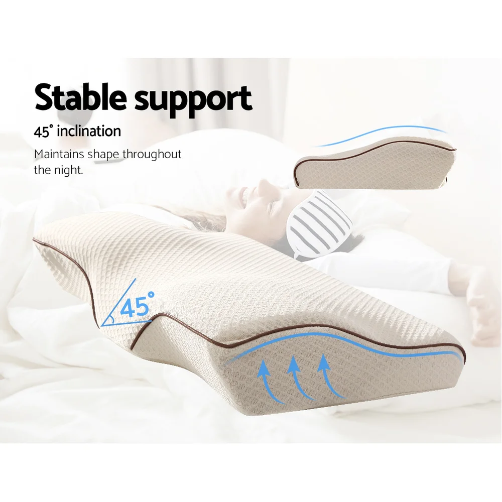 Giselle Bedding Memory Foam Contour Pillow - Butterfly Shape, 60x35cm, Neck & Shoulder Support, Washable Cover