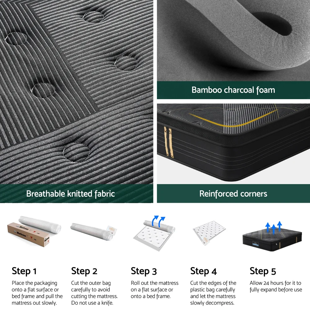 Giselle Bedding King Mattress - 35cm Bamboo Pocket Foam, Medium-Firm Support, Euro Top, Midnight Series, Black